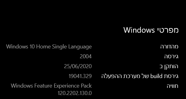 5. אפשר לראות גם למטה איזו מהדורת ווינדוס יש לכם תחת הכותרת מפרטי Windows.