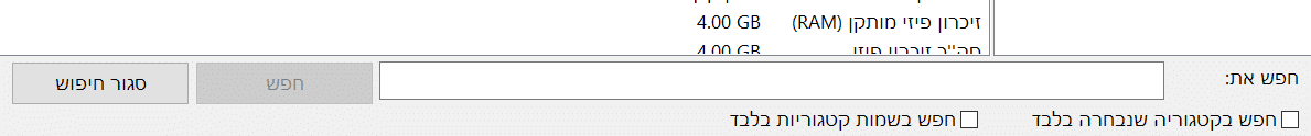 אם אתם מחפשים מידע על רכיב ספציפי, אפשר לבצע חיפוש במידע מערכת בתחתית המסך.