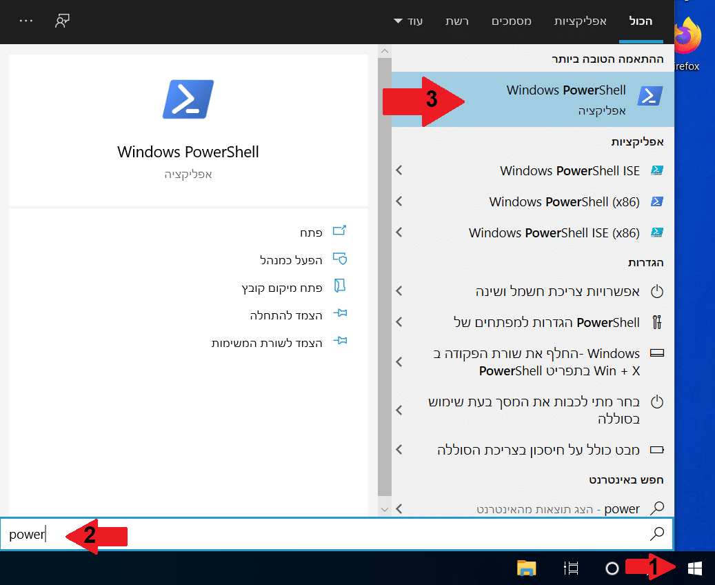 טיפ: אפשר גם להיכנס ל PowerShell דרך קיצור המקשים: התחל + X, ואז ברישמה שתופיע נבחר PowerShell.