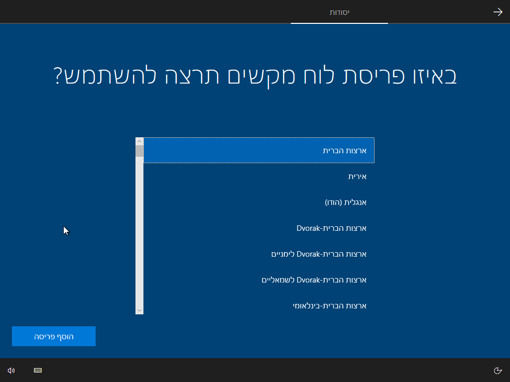 12. במסך הבא ווינדוס ישאל אותנו אם אנחנו רוצים להוסיף פריסת לוח מקשים נוספת. אנחנו צריכים להוסיף גם פריסה באנגלית, לכן נלחץ הוסף פריסה.