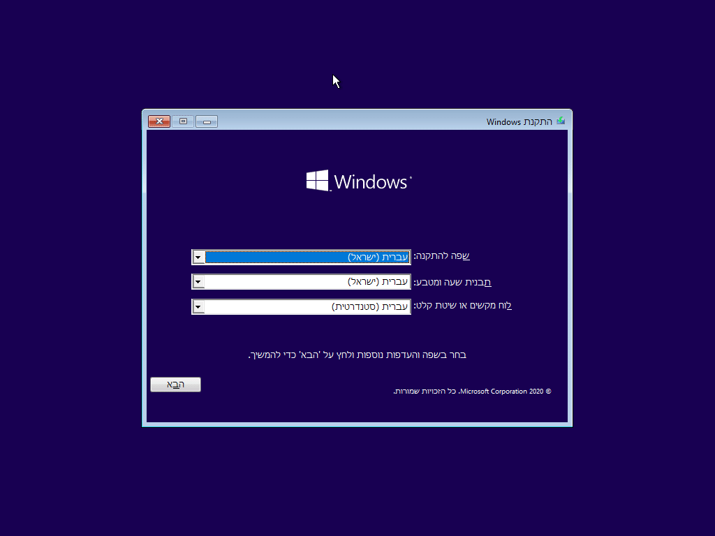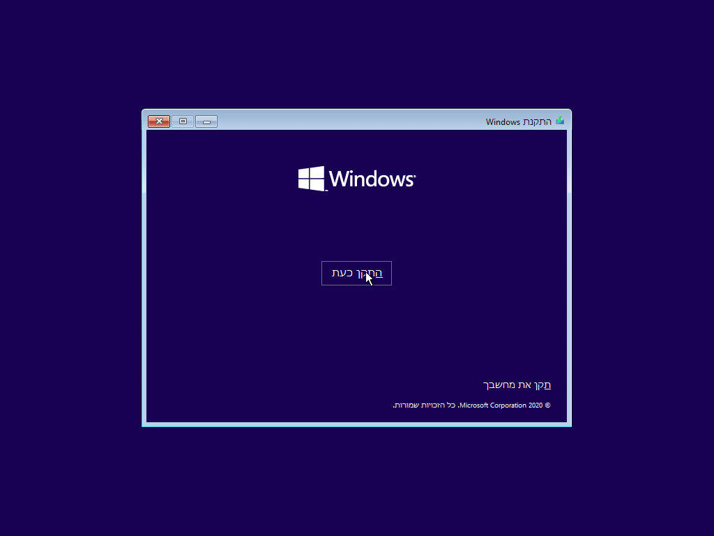 2. לאחר שהמחשב סיים לטעון את קבצי ההתקנה, יופיע חלון התקנת Windows.