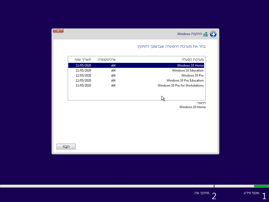 5. לאחר מכן נבחר את מערכת ההפעלה שברצוננו להתקין. למחשב ביתי, Windows 10 Home יספיק.