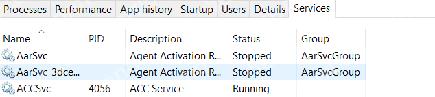 לשונית שירותים מציגה את השרותים הפועלים כעת.